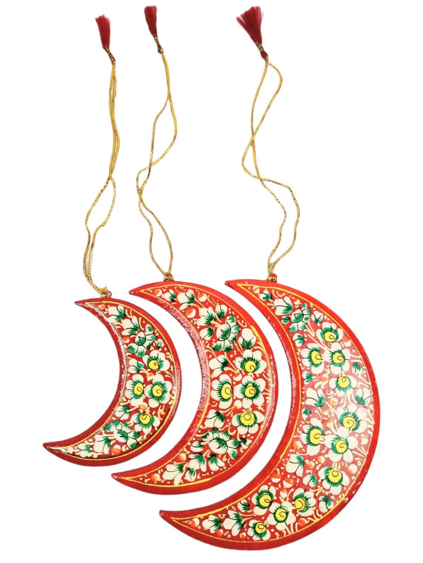 Zanskar Arts presents new beautiful 3 piece paper machie hanging moon set for your home decoration which adds brightness to your home. These are especially designed to decorate your Christmas tree. It is hand painted and has unique glossy finish on its surface.