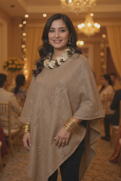 The Wonderful Pashmina Panchu hand dyed in Kashmina. Fine, light and soft yet it will keep cosy on those cooler winter days and evenings. Pashmina Panchu can be worn as a wrap in the spring through autumn and as a panchu during the winter. Get trendy with this stylish shrug poncho. This poncho has a distinct feel and tweed look to style your western attire. It Can also be a perfect gift Family, friend etc.